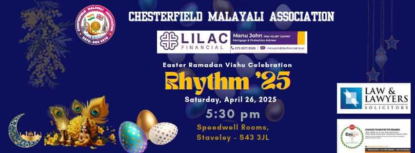 Experience the enchantment of ‘Rhythm – 25’, an Easter-Vishu-Ramadan program brought to you by the Chesterfield Malayali Association!