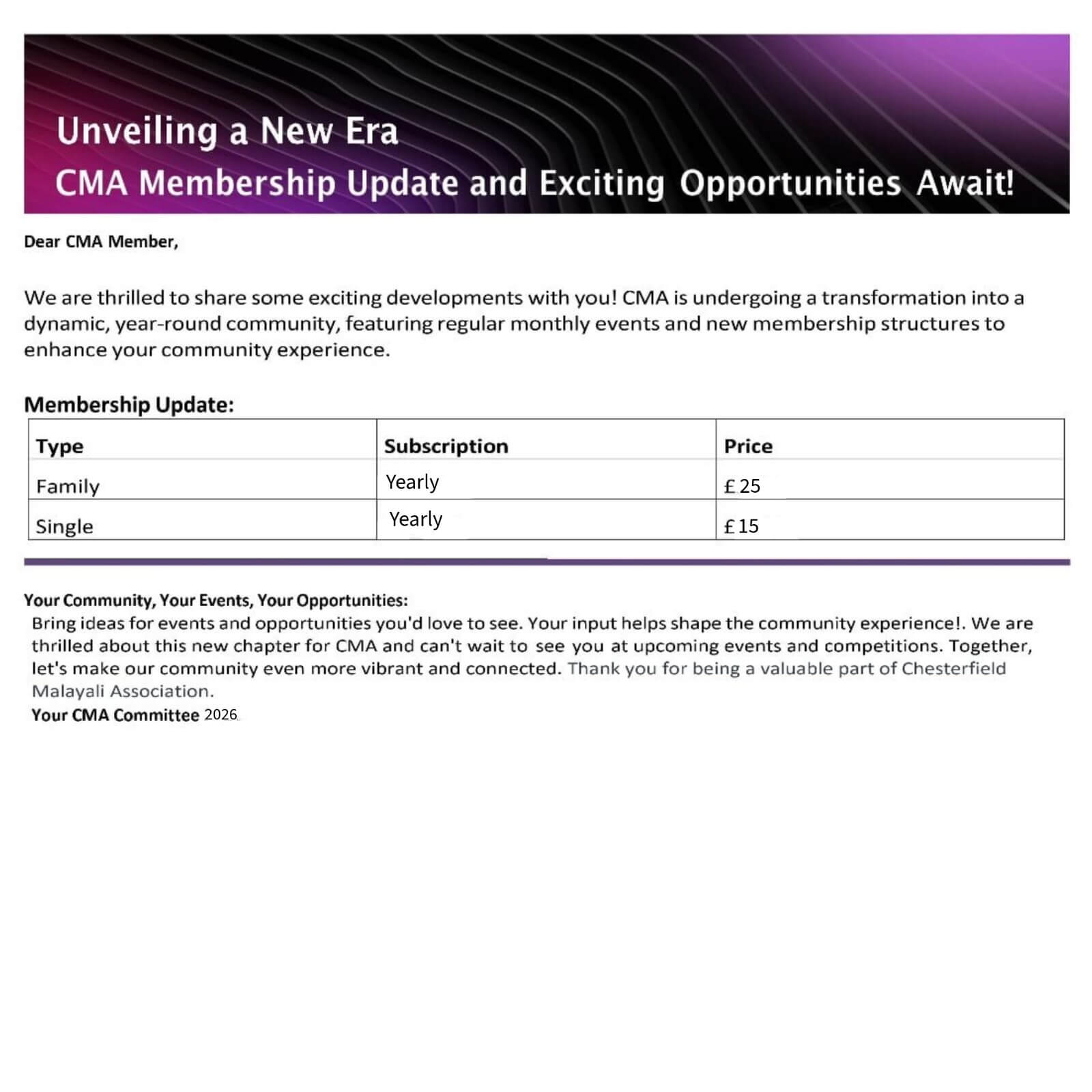All correspondence from CMA will use this email address.